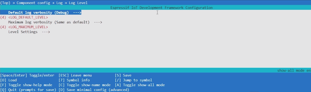 In this code, we simply log some messages out over the serial port. We can define the log level in Kconfig. You’ll also notice that we have the conditional preprocessor #ifdef here: